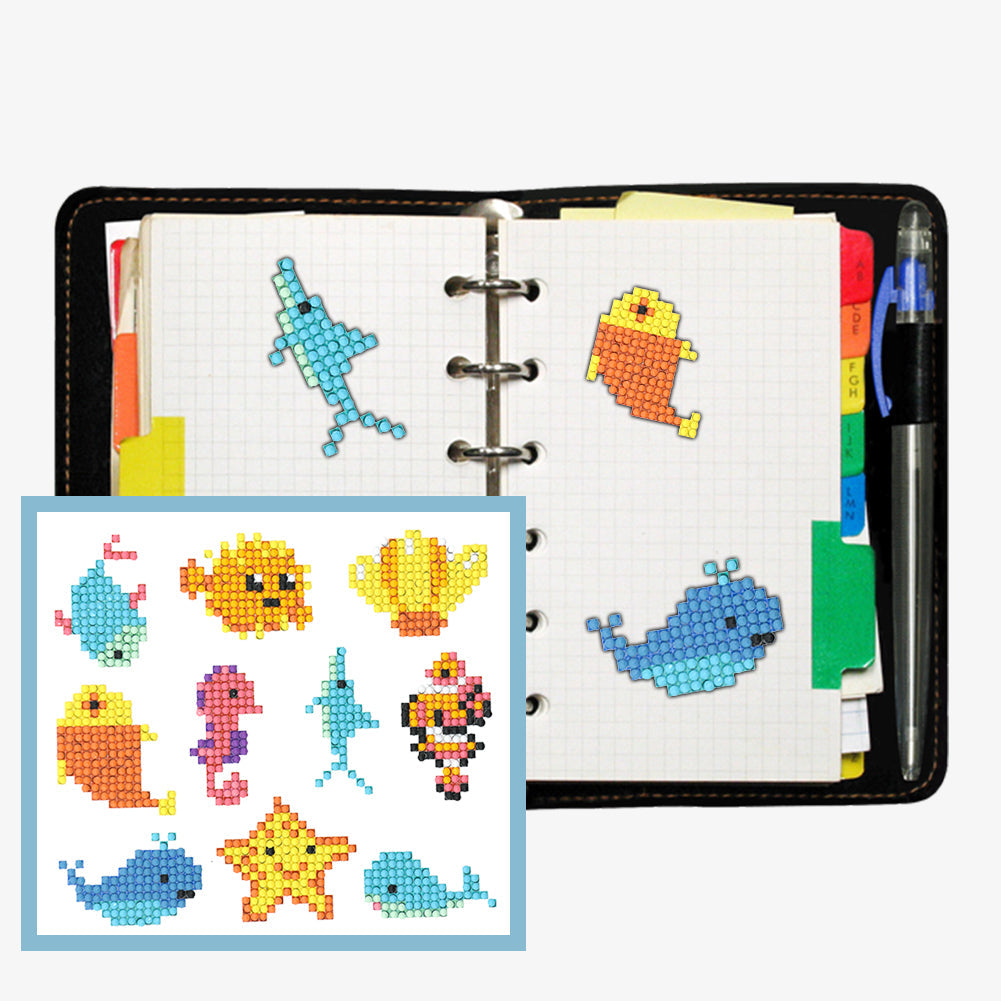 10pcs DIY Round Drill Diamond Painting Marine Organism Rhinestone Drawing Picture Handmade Stickers Decal for Home Phone Cup Decoration