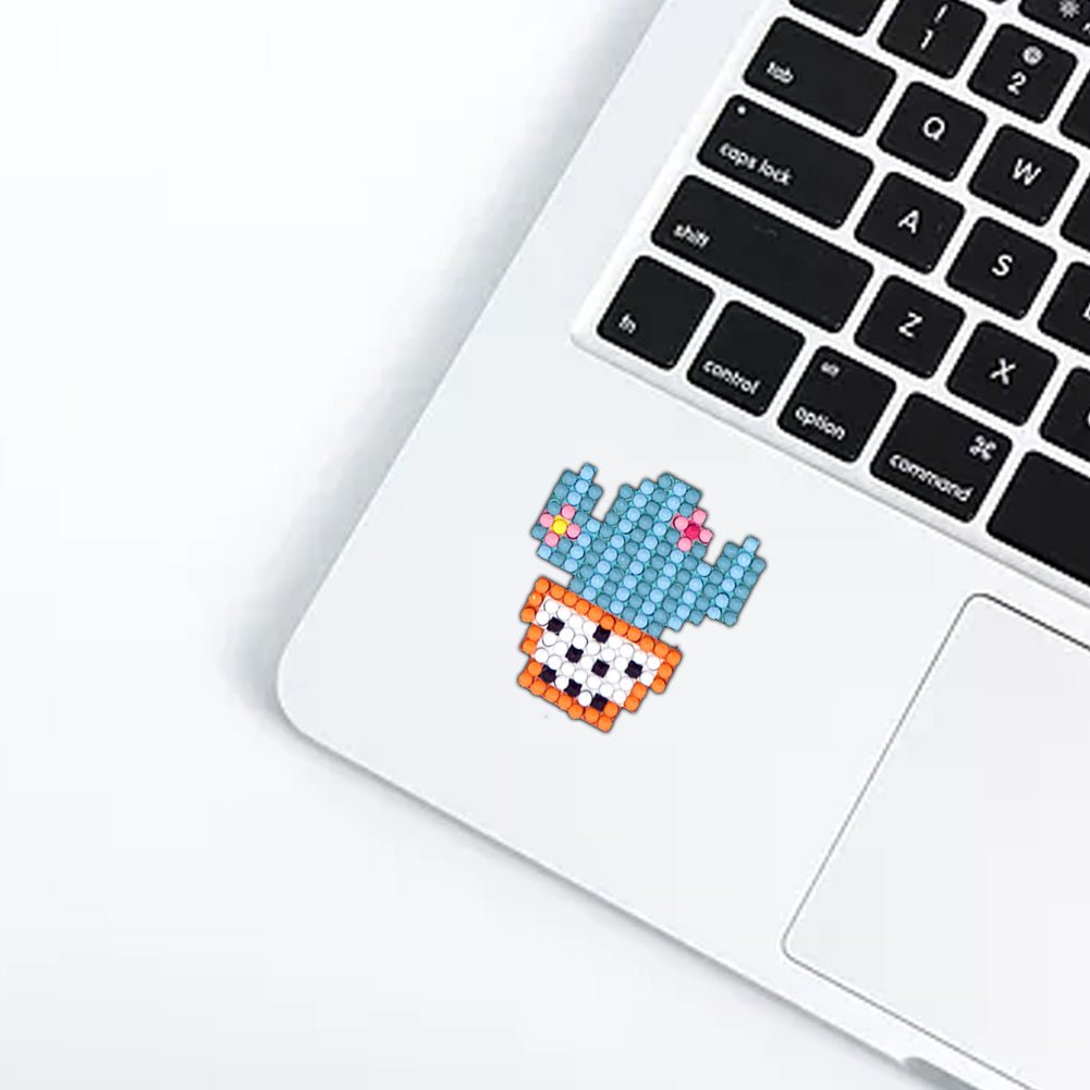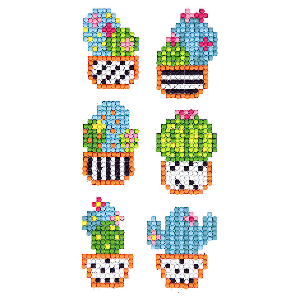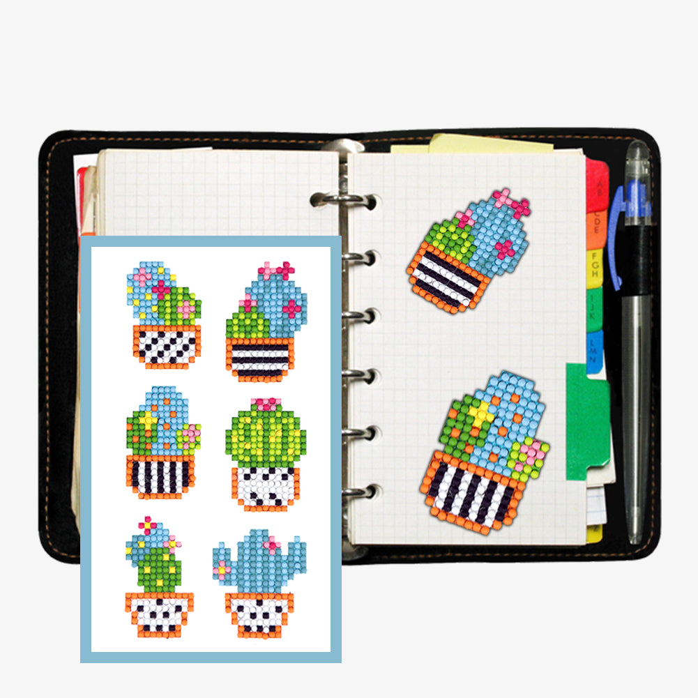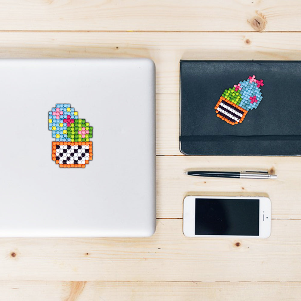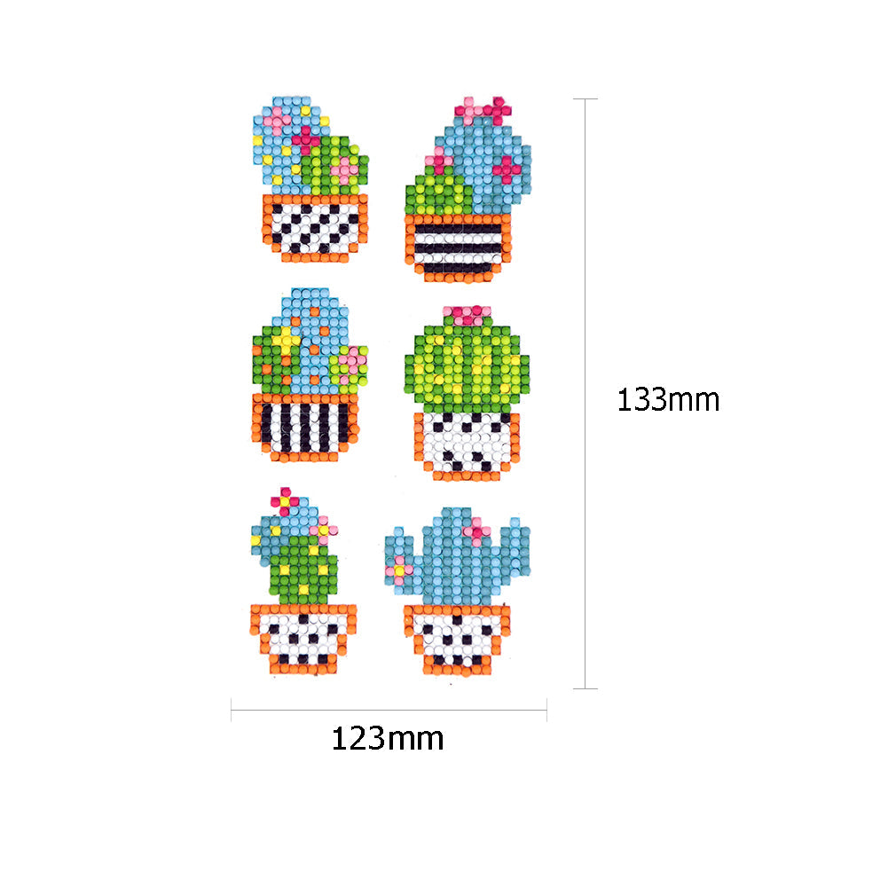 6pcs DIY Round Drill Diamond Painting Cactus Garden Rhinestone Drawing Picture Handmade Stickers Decal for Home Phone Cup Decoration