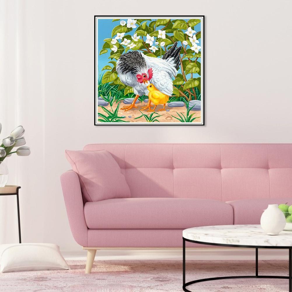 5D Full Round Drill Diamond Painting DIY Chicken Embroidery Cross Stitch Mosaic Kit Rhinestone Picture Canvas Wall Art Modern Living Room Home Decoration