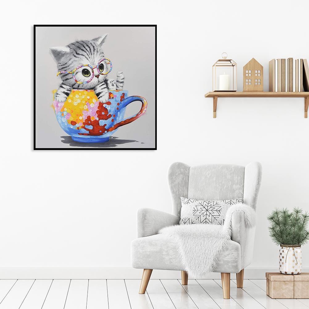 5D DIY Full Drill Diamond Painting Cup Cat Cross Stitch Embroidery Mosaic Kit Home Decoration