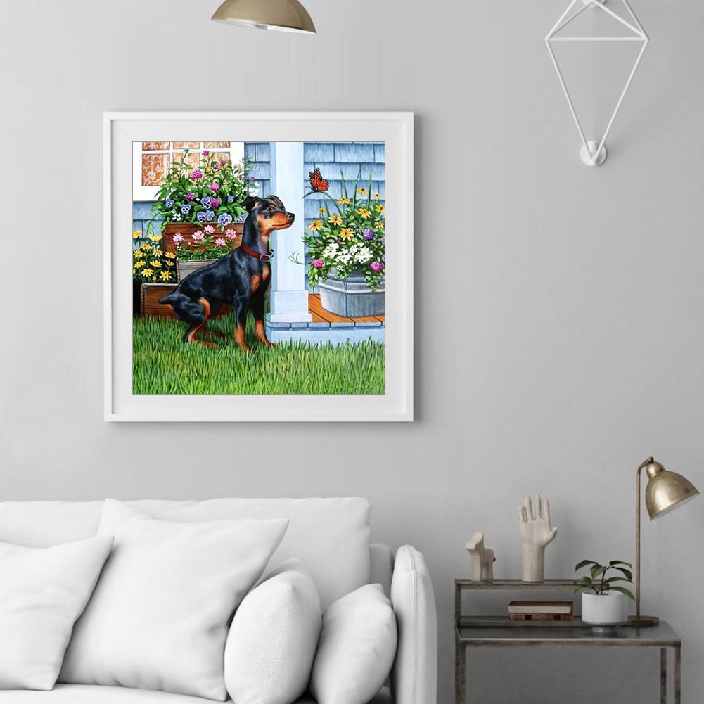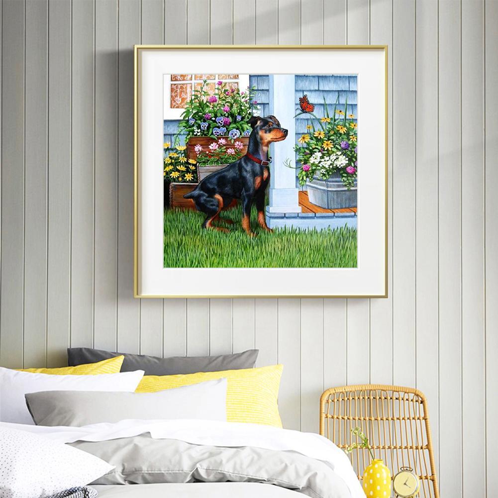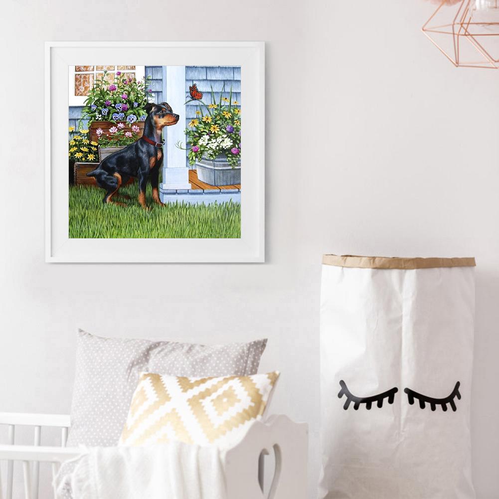 Dog Garden 5D DIY Full Round Rhinestones Diamond Painting Embroidery Kits Needlework Set Cross Stitch Mosaic Art Craft Home Decor Gift