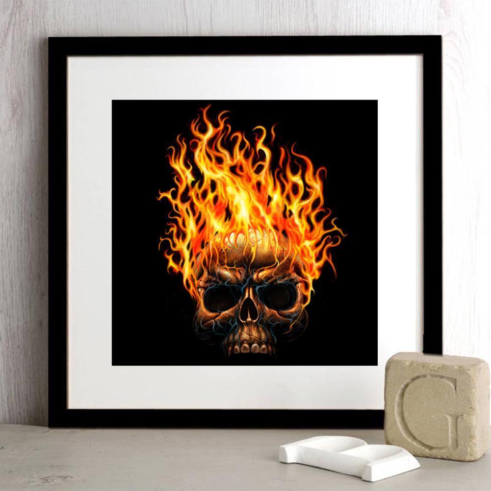 Flaming Skull 5D DIY Full Drill Round Diamond Painting Embroidery Kits Needlework Set Cross Stitch Mosaic Art Craft Home Decor Gift