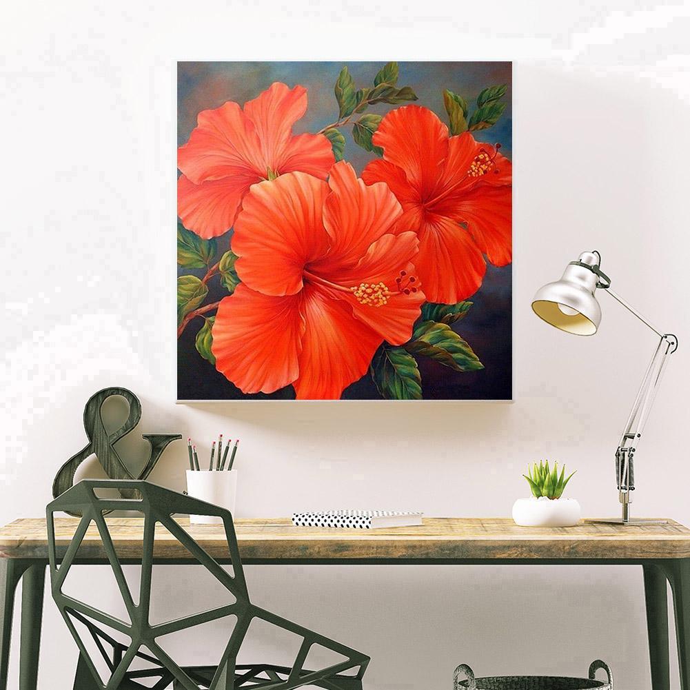 5D DIY Full Drill Round Diamond Painting Red Flowers Cross Stitch Embroidery Mosaic Kit Home Decor Needlework