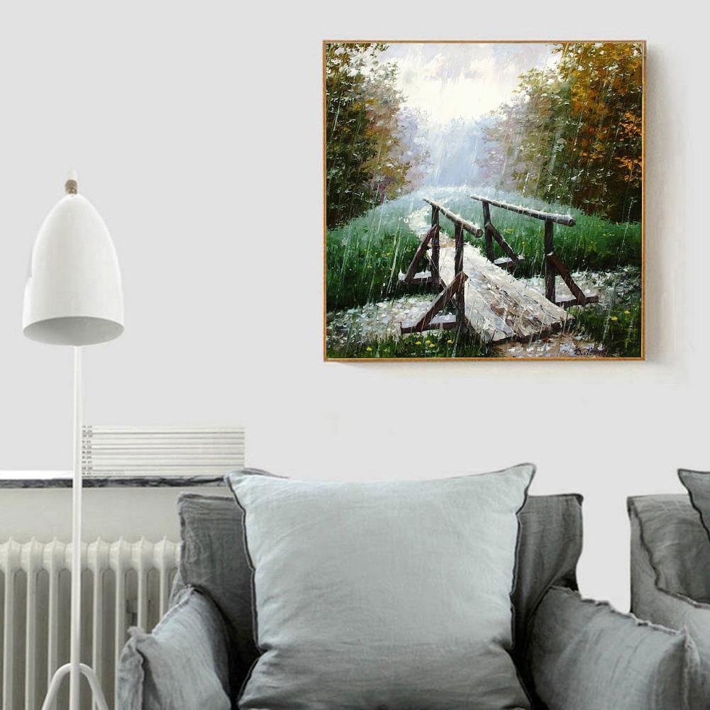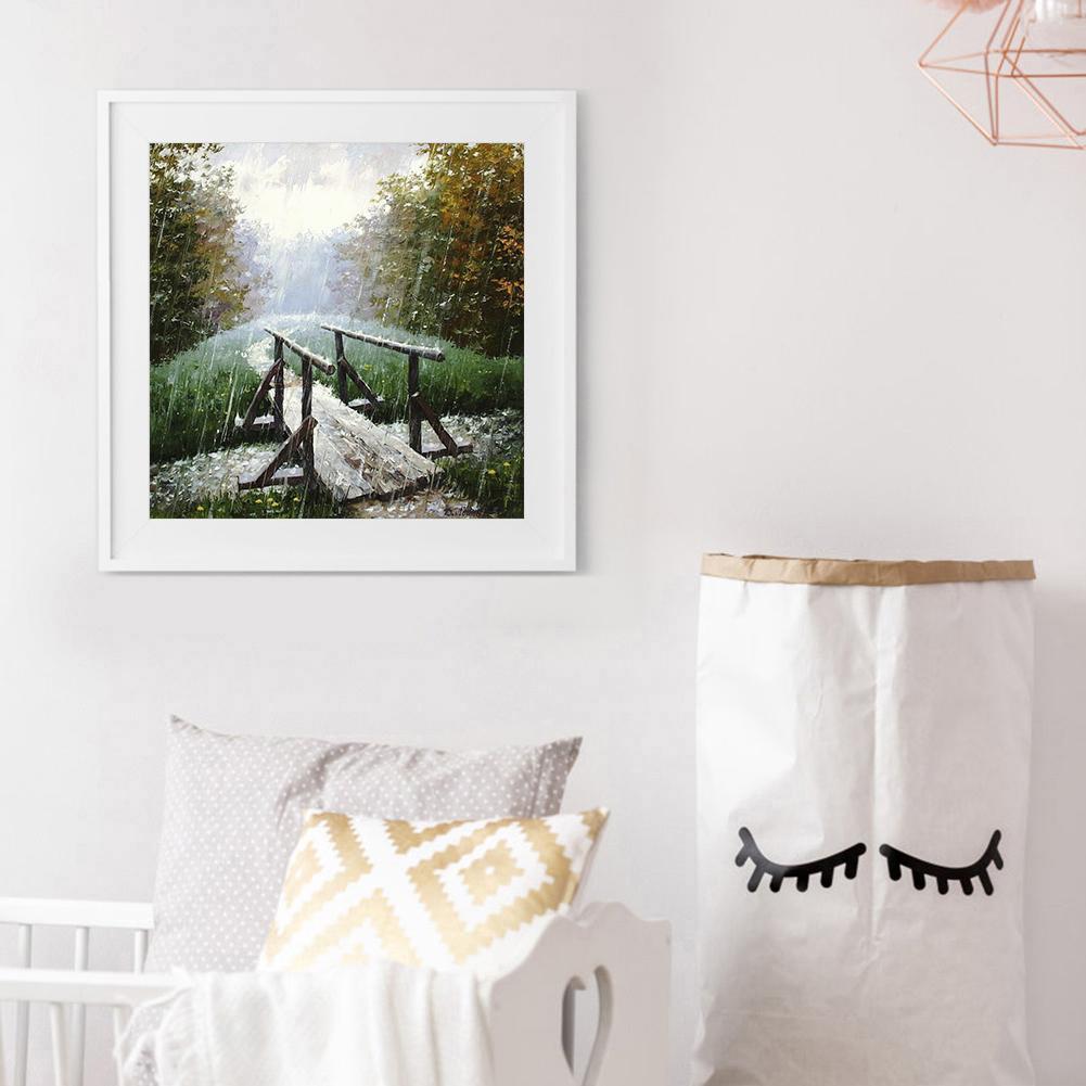 Small Bridge in the Rain 5D DIY Full Round Rhinestones Diamond Painting Embroidery Kits Needlework Cross Stitch Mosaic Art Craft Home Decor Gift
