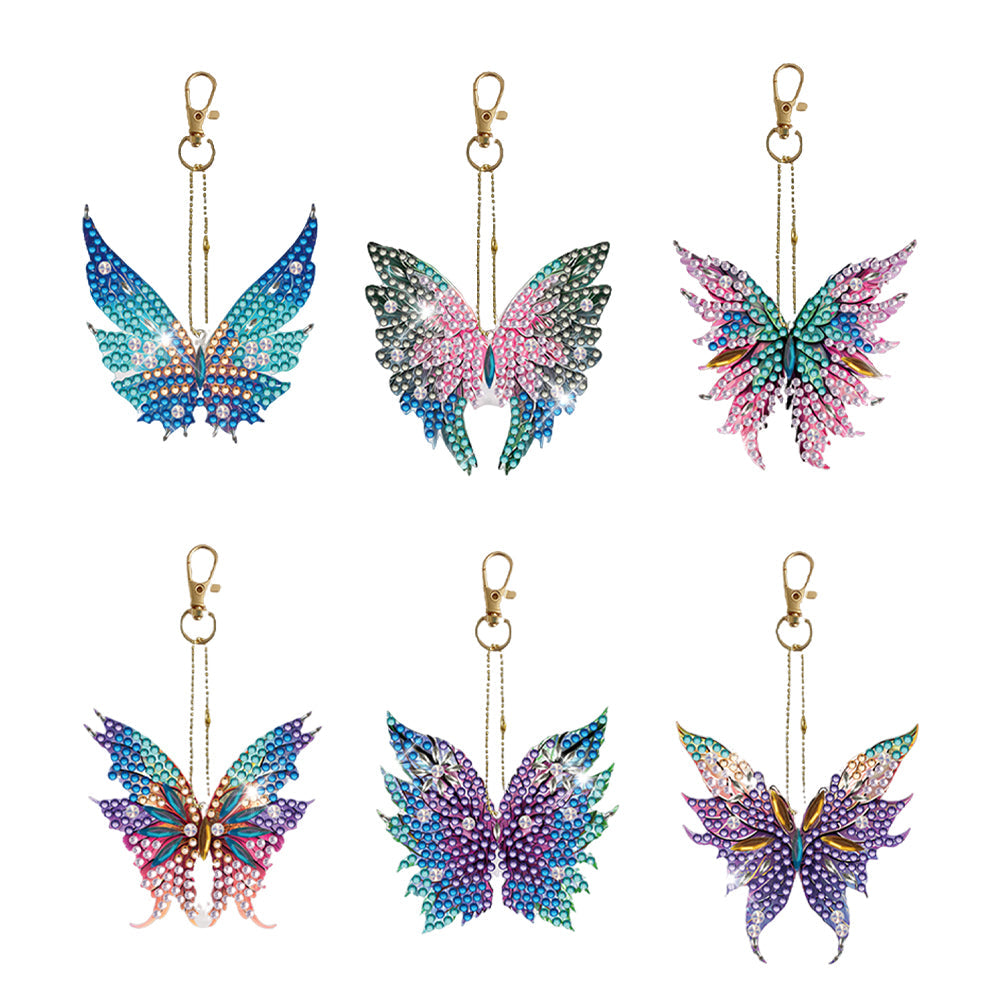 6pcs/Set-Butterfly/Wing-Double Side Drill-Diamond Keychain