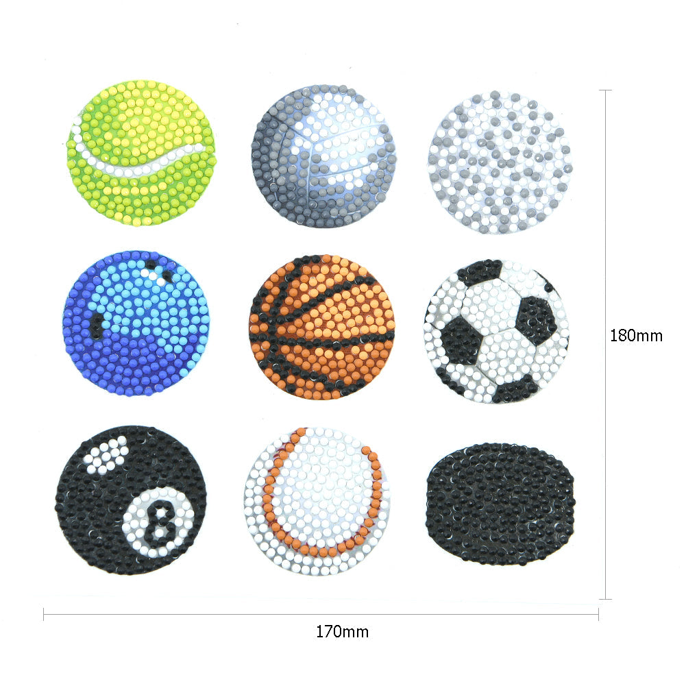9pcs/set Kids Toys Stickers DIY Round Drill Diamond Painting Sports Ball Rhinestone Drawing Picture Decal for Home Phone Cup Decoration