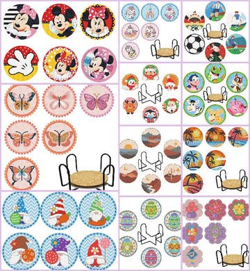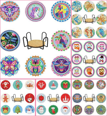 8pcs/set +1 storage rack-Animal-Wooden Diamond Coaster