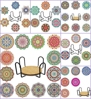 8pcs/set +1 storage rack-Mandala-Wooden Diamond Coaster