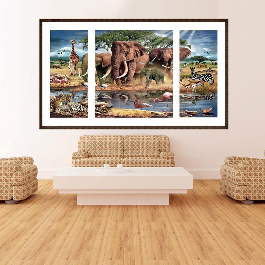 Animal Family 5D DIY Full Drill Diamond Painting 3-pictures Combination Craft Cross Stitch Kit Embroidery Home Decor Gift