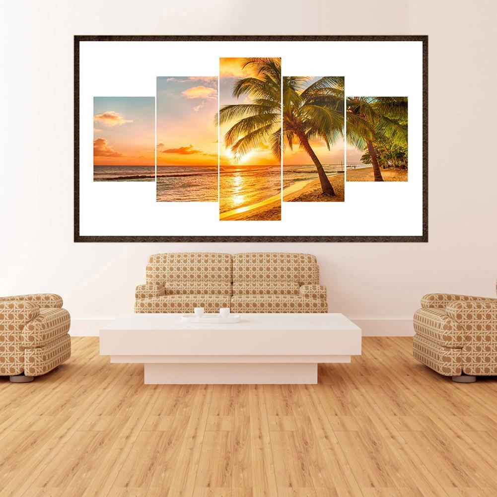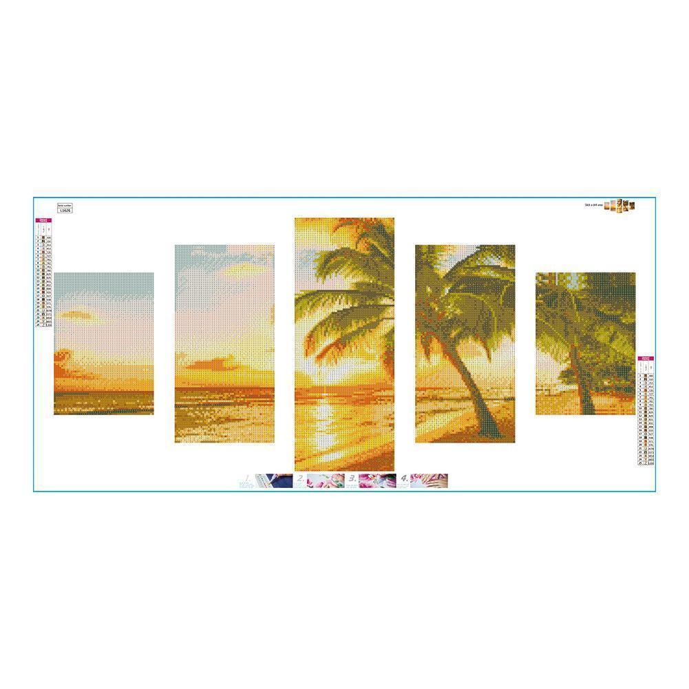 5pcs 5D DIY Full Drill Diamond Painting Coconut Tree Cross Stitch Embroidery 5-pictures Combination Kit Craft Needlework Home Decor Gift