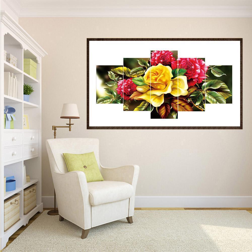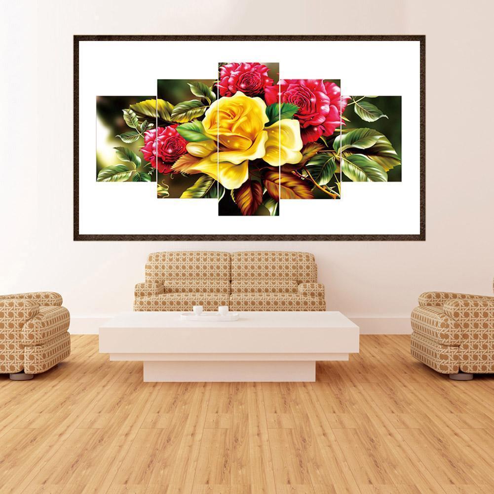 Flowers 5D DIY Full Drill Diamond Painting Craft 5-pictures Combination Kit Cross Stitch Embroidery Home Decor Gift