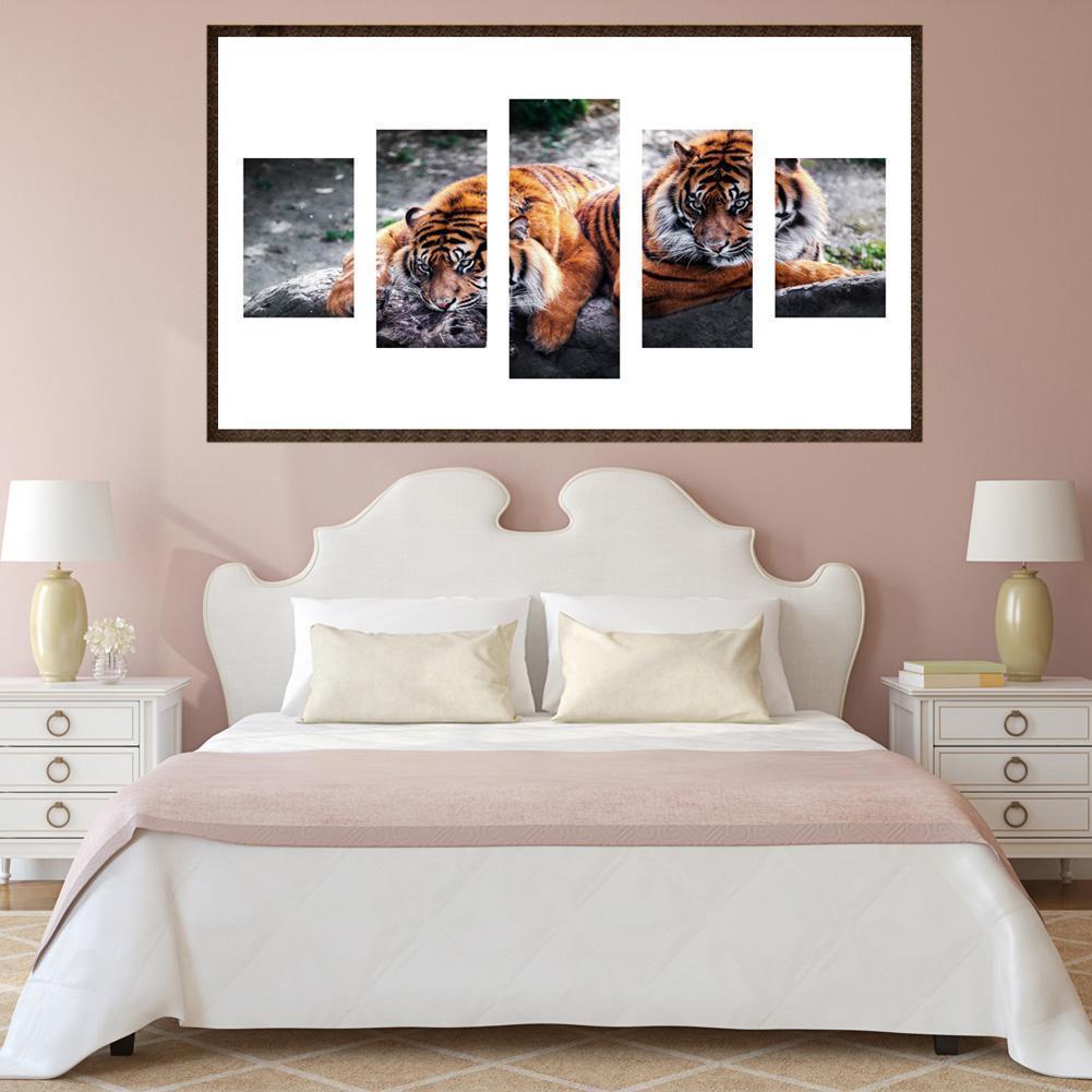 2 Tigers 5D DIY Full Drill Diamond Painting 5-pictures Combination Craft Cross Stitch Kit Embroidery Home Decor Gift
