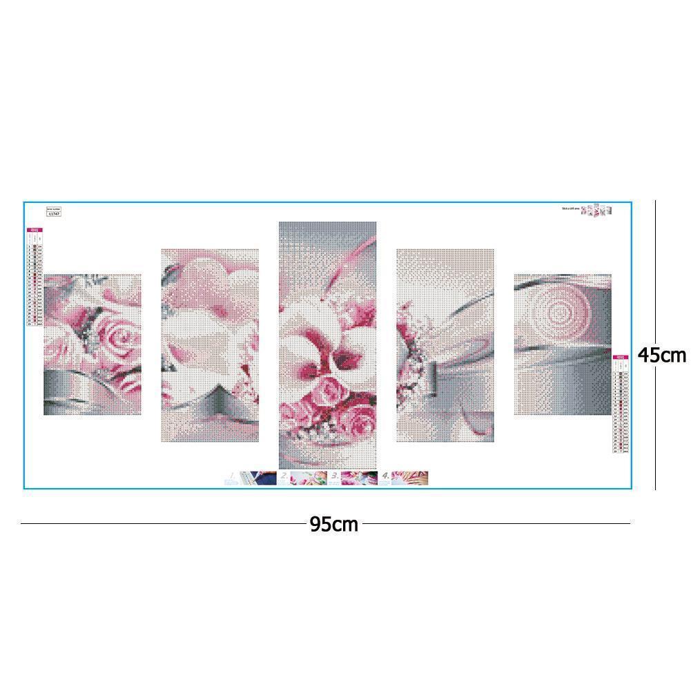5pcs/set Flower - Full Drill Round Drill Painting - 95x45cm