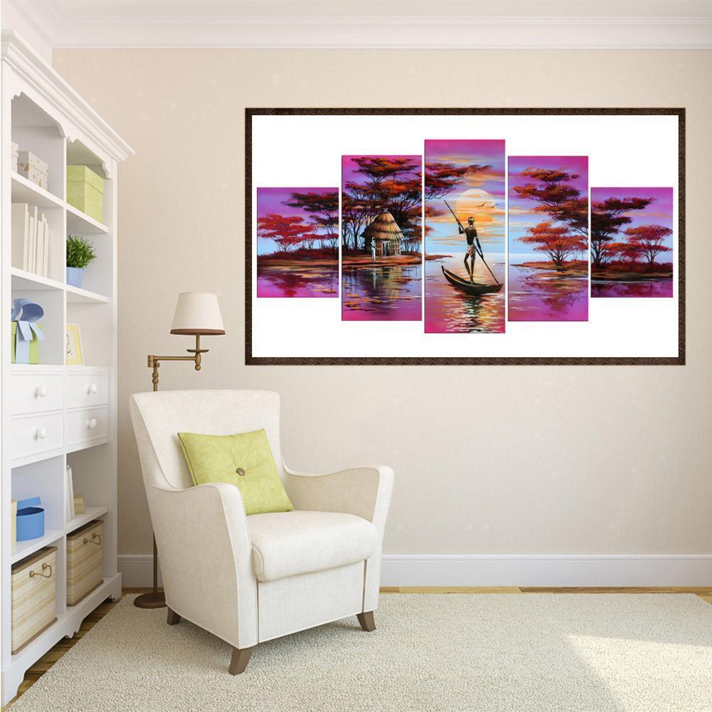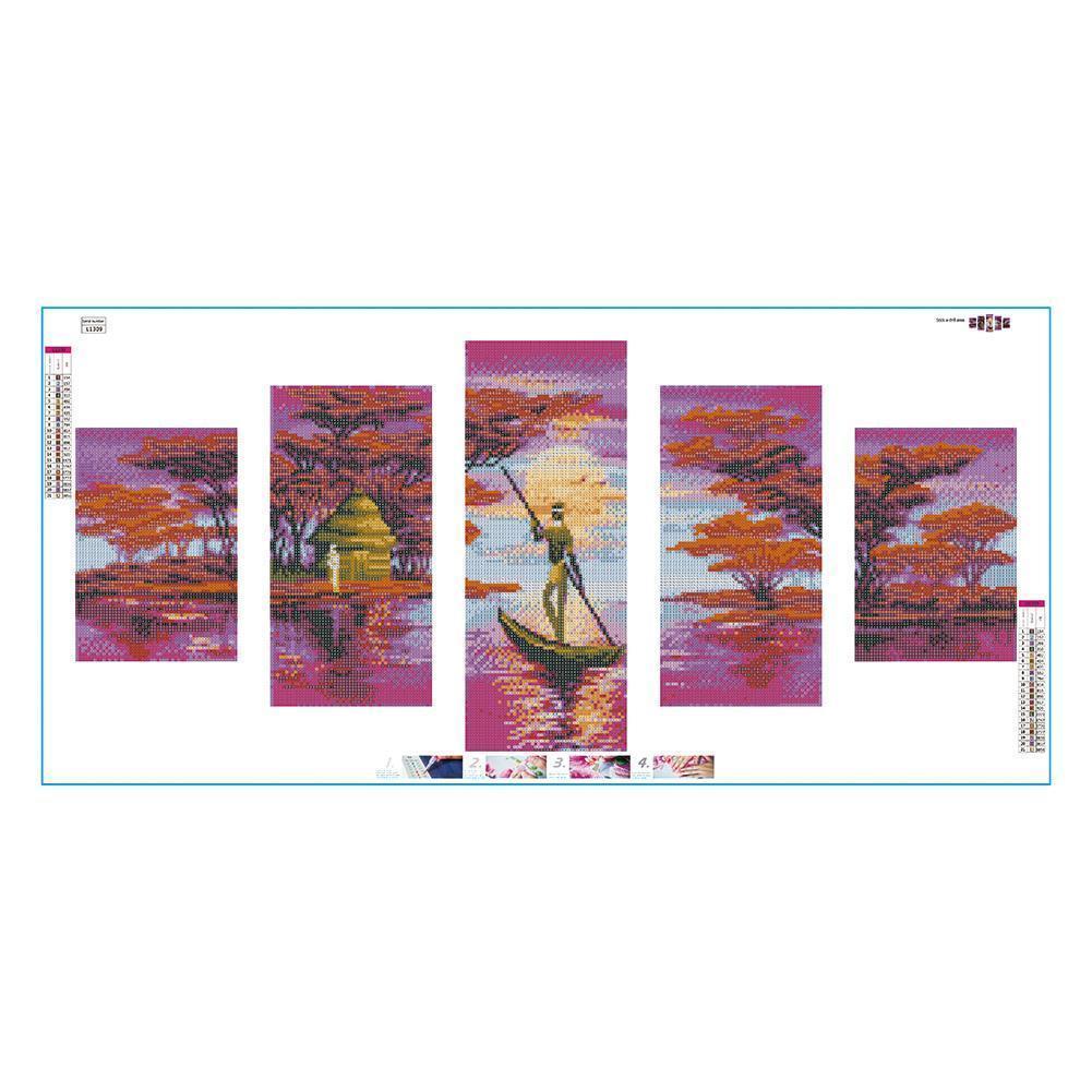 Rowing 5D DIY Full Drill Diamond Painting 5-pictures Combination Craft Cross Stitch Kit Embroidery Home Decor Gift
