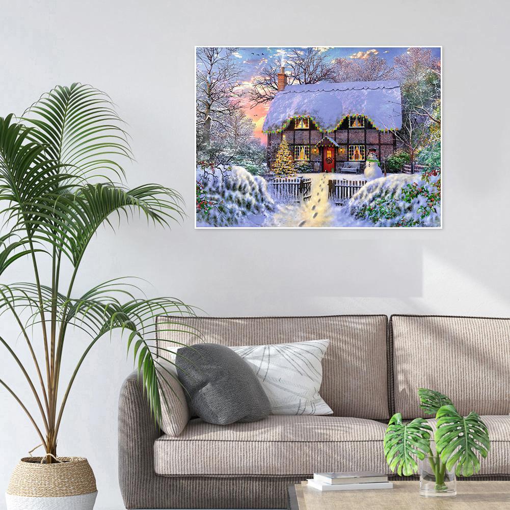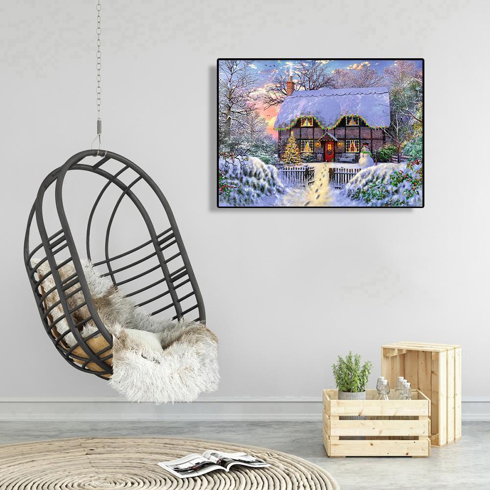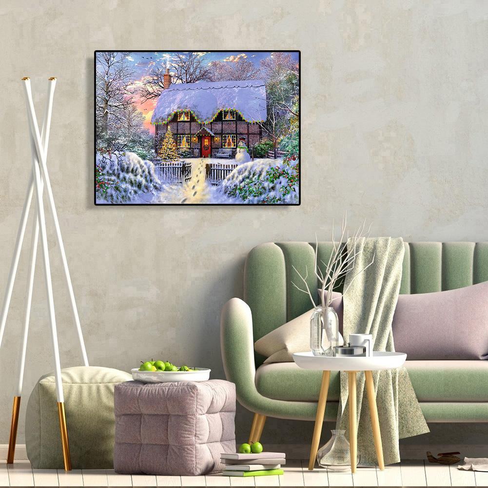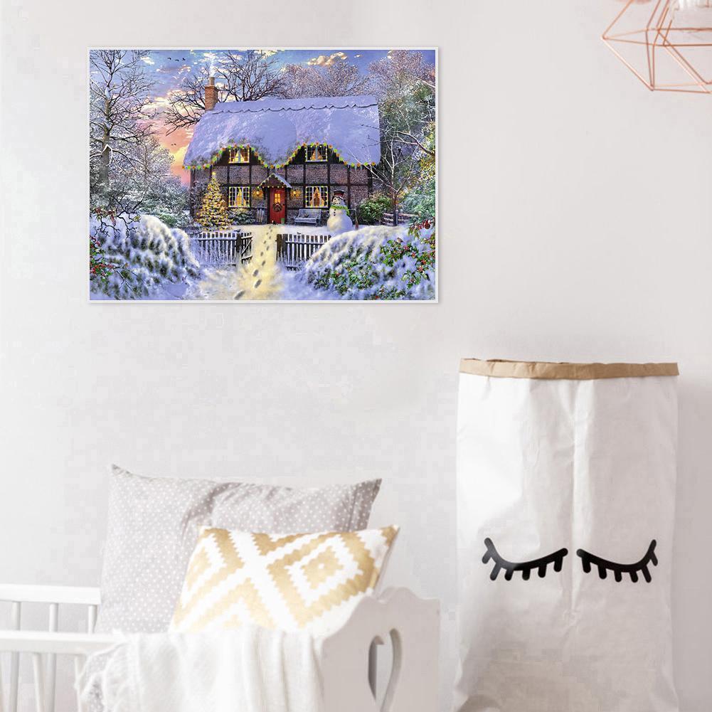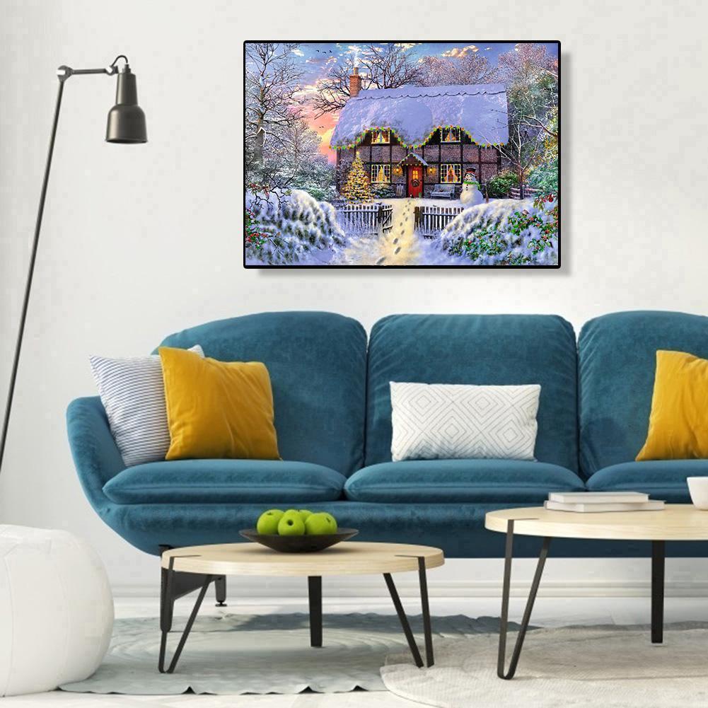 5D DIY Full Round Drill Diamond Painting Christmas House Cross Stitch Embroidery Mosaic Craft Needlework Set Home Decoration