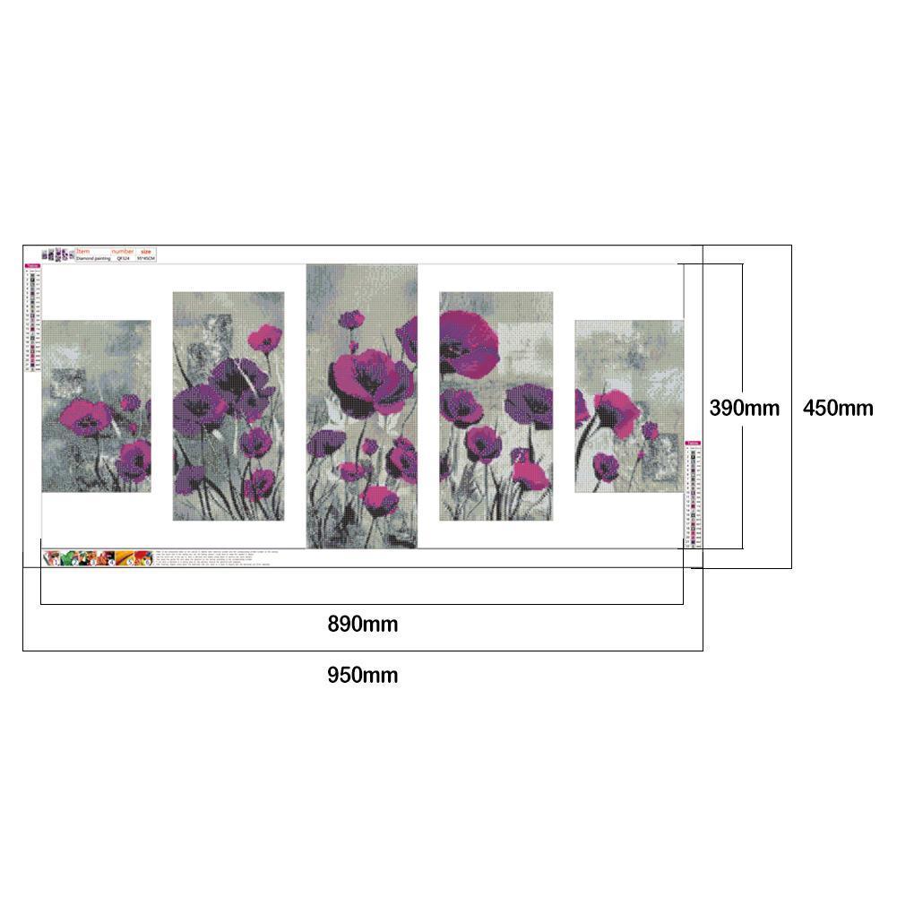 5pcs/set Flower  - Full Drill Round Drill Painting  - 95x45cm