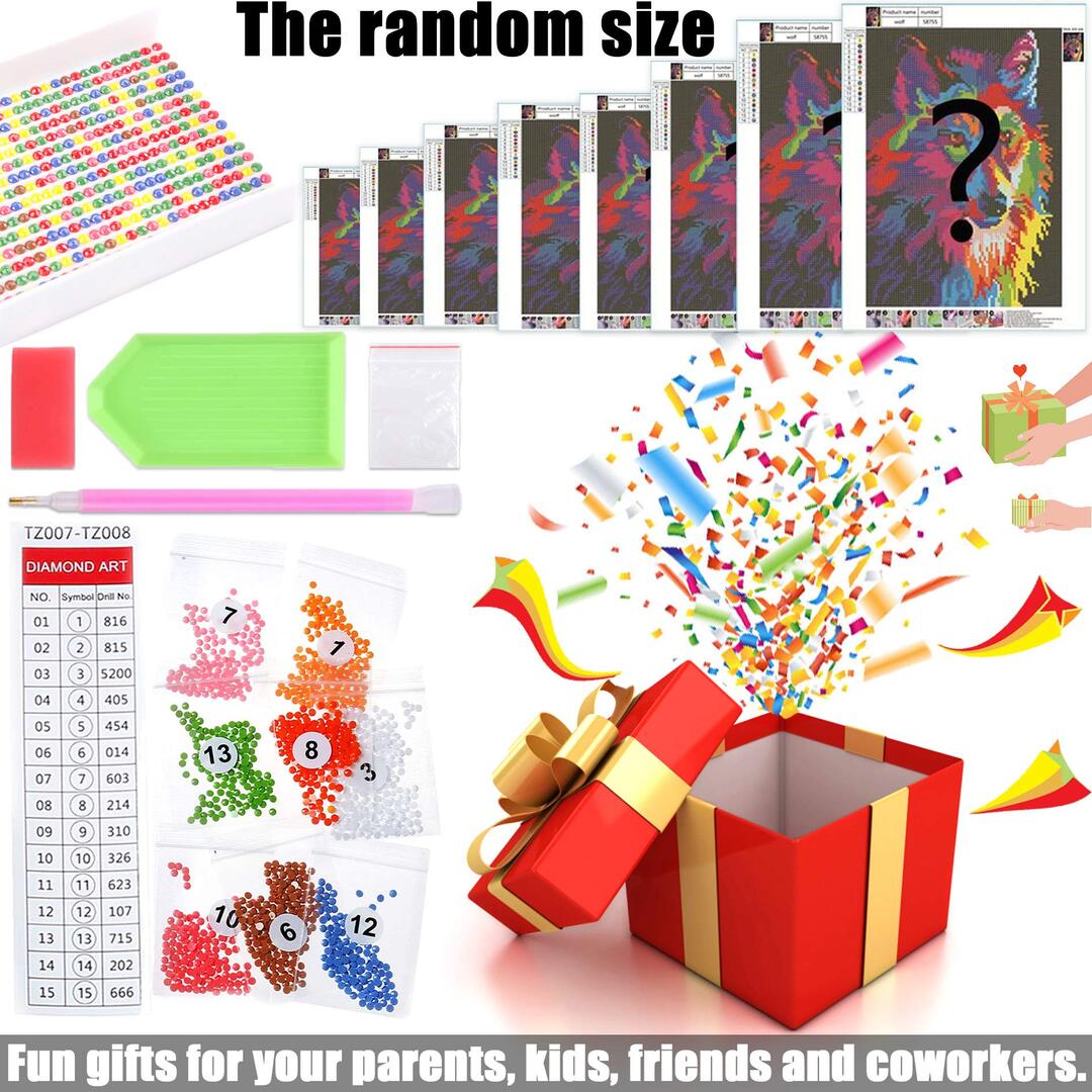 • 【ARE YOU LUCKY?】The diamond paintings in our blind boxes are all individually packaged. The pattern is randomly selected, and its size is also random, but it is usually 30x40cm/35x35cm/30x30cm. Of course, if you are lucky, you may receive a larger size 40x50cm/40x40cm/50x50cm.