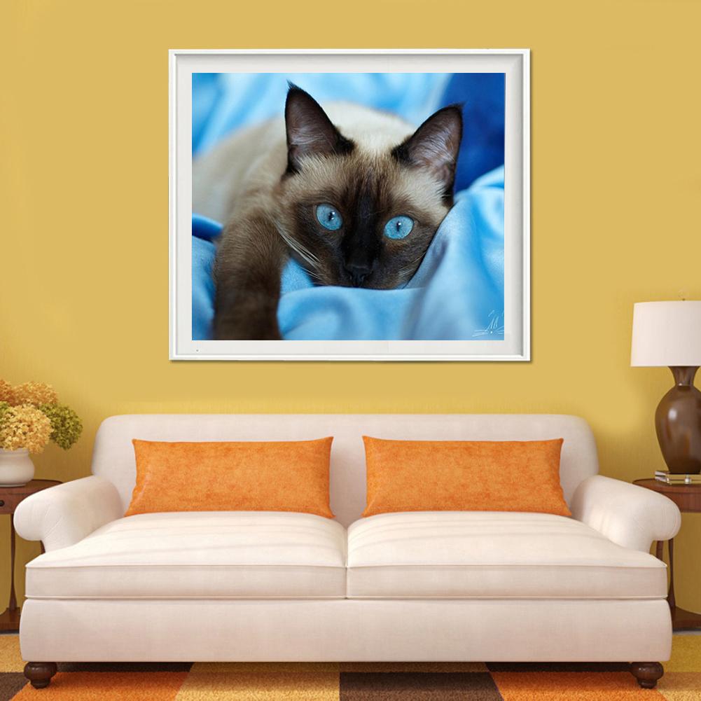 1 X Full Drill Blue Eye Cat Diamond Painting(with rhinestones need to be pasted)