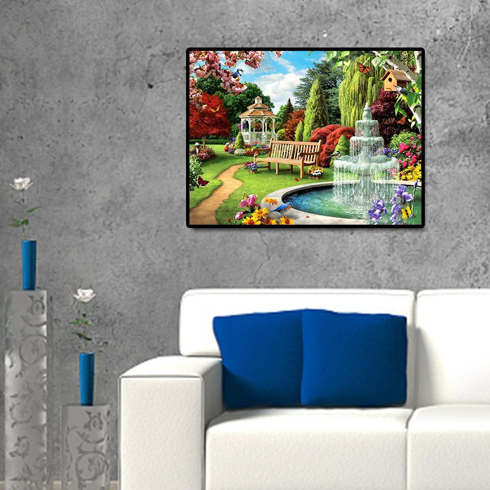 5D DIY Full Drill Round Diamond Painting Courtyard Cross Stitch Embroidery Mosaic Kit Home Decor Needlework