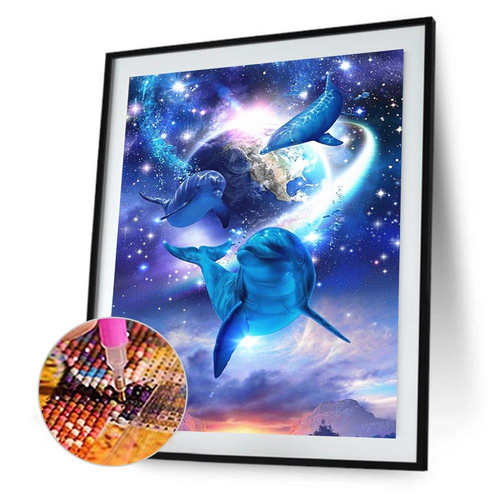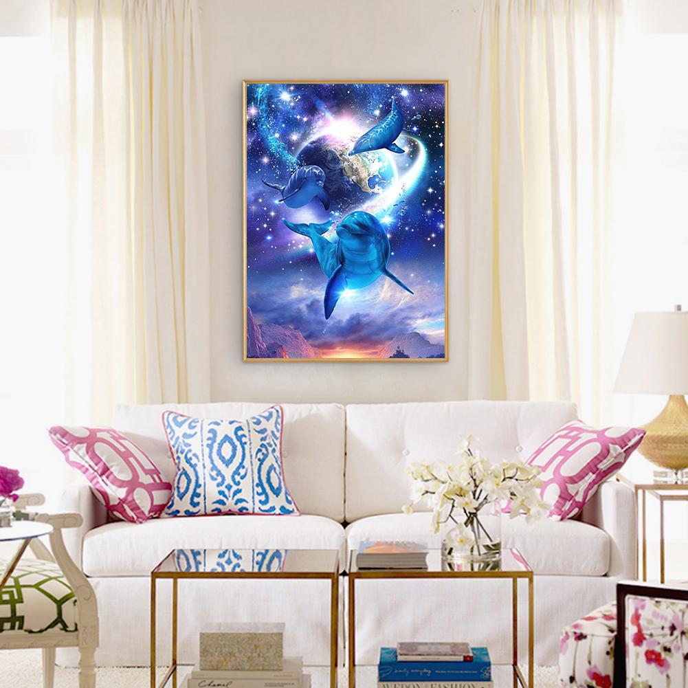 5D DIY Full Round Drill Diamond Painting Dolphin Cross Stitch Mosaic Kit Embroidery Rhinestone Picture Modern Living Room Home Decoration