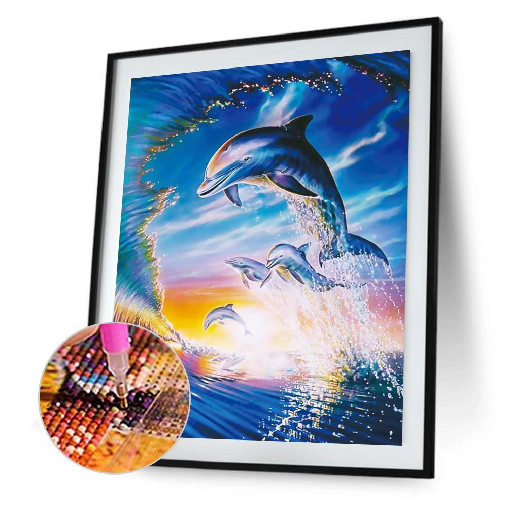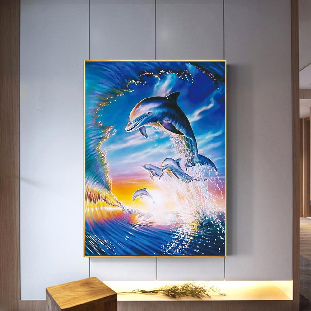 5D DIY Full Round Drill Diamond Painting Dolphin Cross Stitch Mosaic Kit Embroidery Rhinestone Picture Modern Living Room Home Decoration