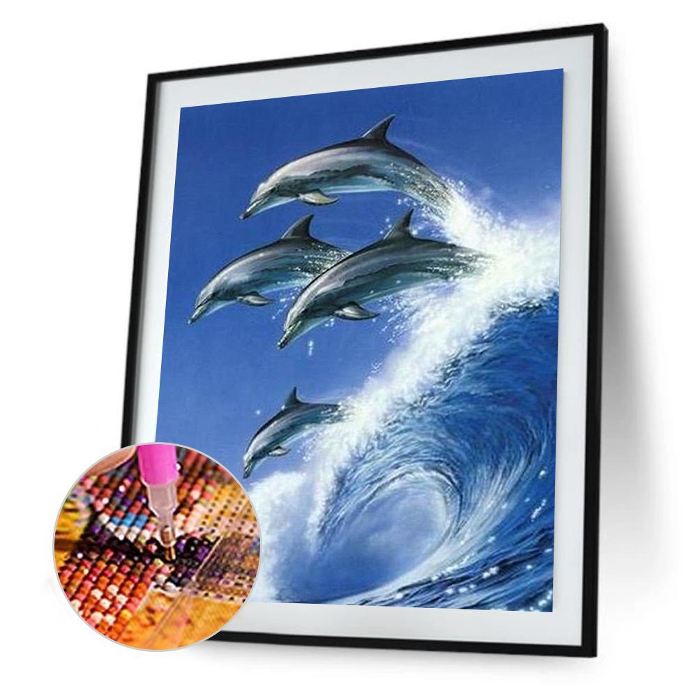 5D DIY Full Round Drill Diamond Painting Dolphin Cross Stitch Mosaic Kit Embroidery Rhinestone Picture Modern Living Room Home Decoration