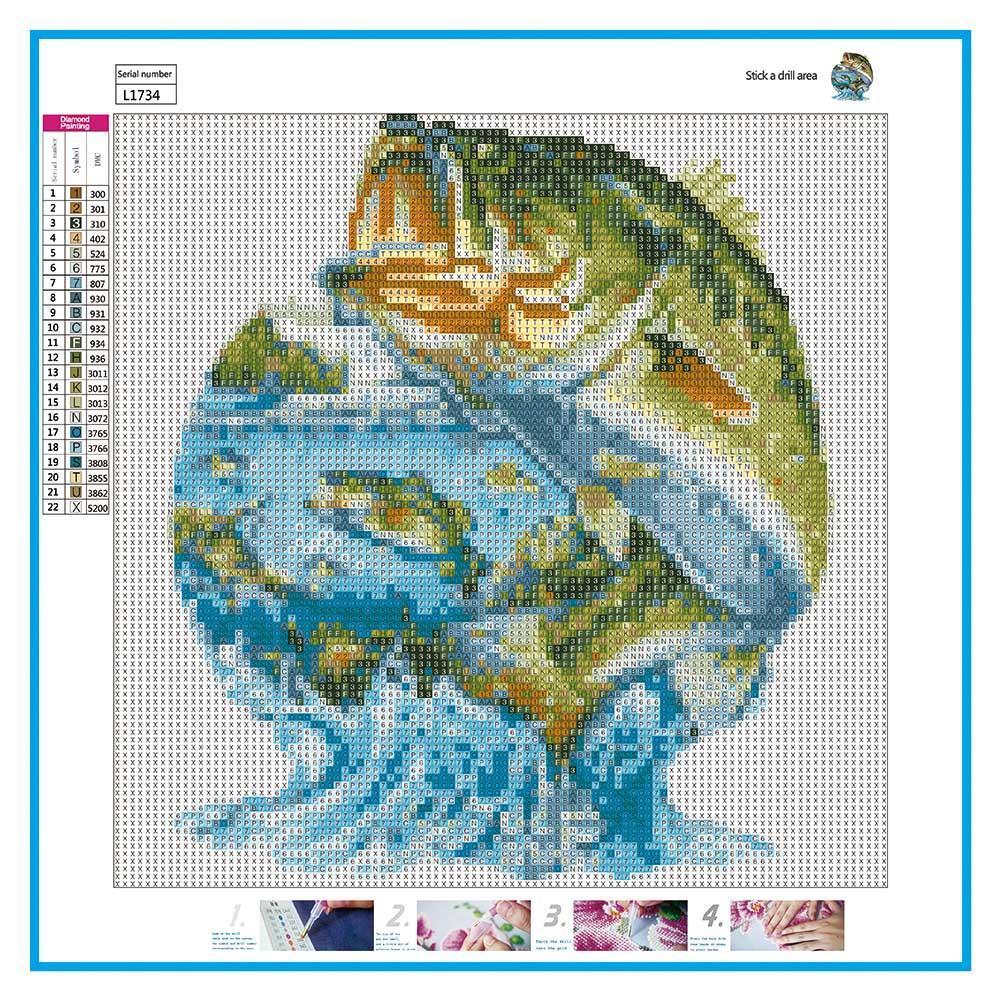 5D DIY Full Drill Diamond Painting Fish Cross Stitch Embroidery Mosaic Kit Craft Needlework Home Decoration