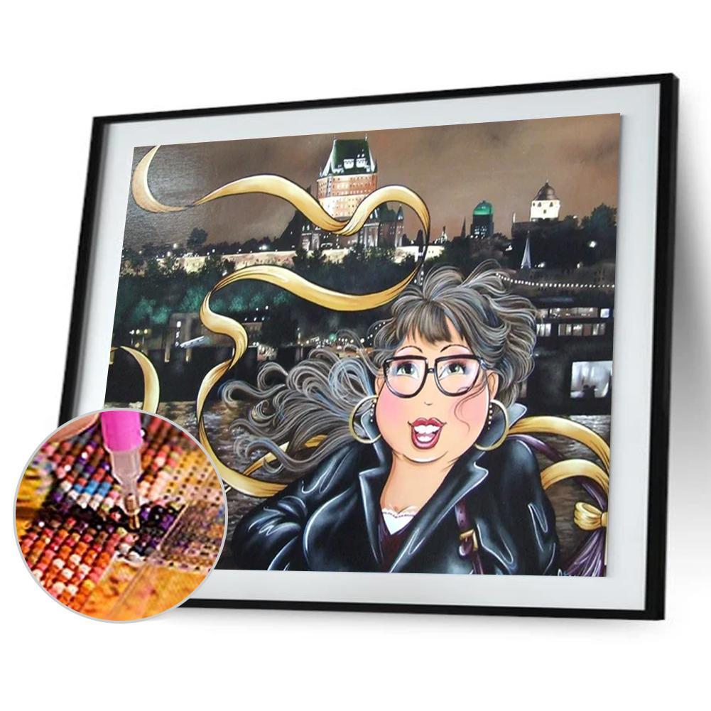 5D Full Round Drill Fat Girl Diamond Painting DIY Cross Stitch Wall Embroidery Rhinestone Art Picture for Christmas Needlework Gift Home Decor