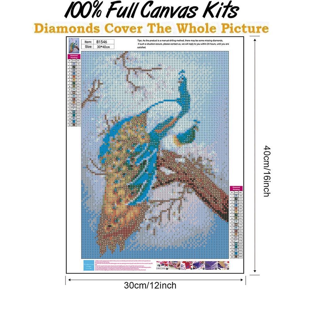5D DIY Full Round Drill Diamond Painting Lordly Peafowl Cross Stitch Embroidery Mosaic Craft Needlework Set Home Decoration