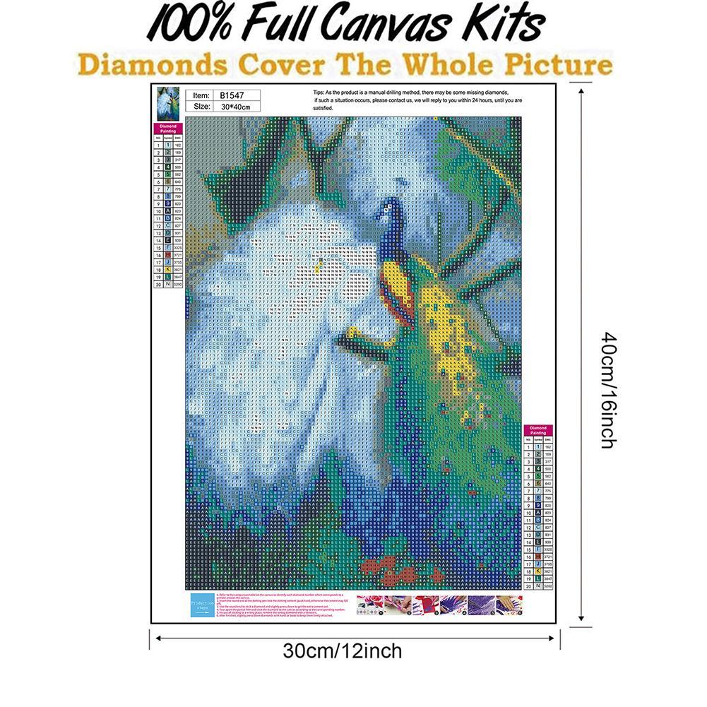 5D DIY Full Round Drill Diamond Painting Lordly Peafowl Cross Stitch Embroidery Mosaic Craft Needlework Set Home Decoration