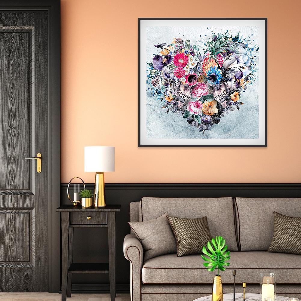 Love Skull Flower - Full Diamond Painting - 30x30cm