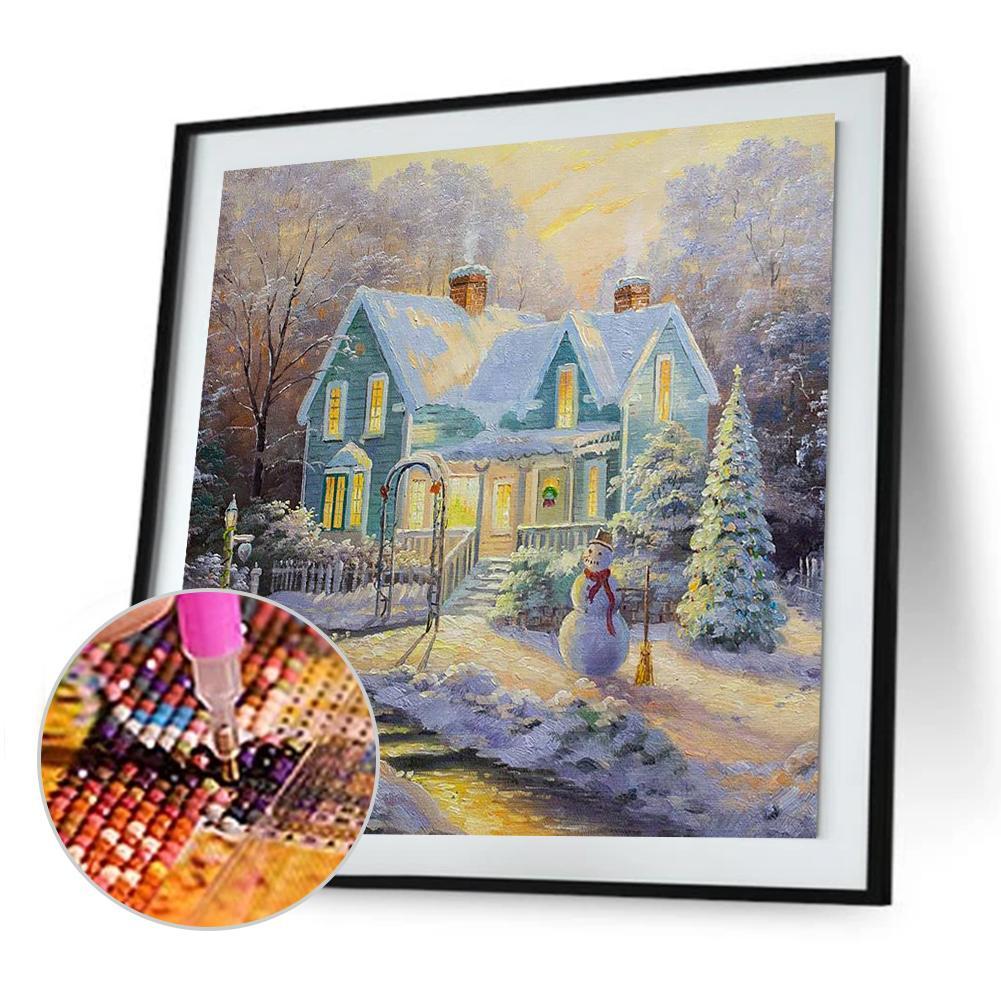 Snow Scene 5D DIY Full Round Rhinestones Diamond Painting Embroidery Kits Needlework Set Cross Stitch Mosaic Art Craft Home Decor Gifts