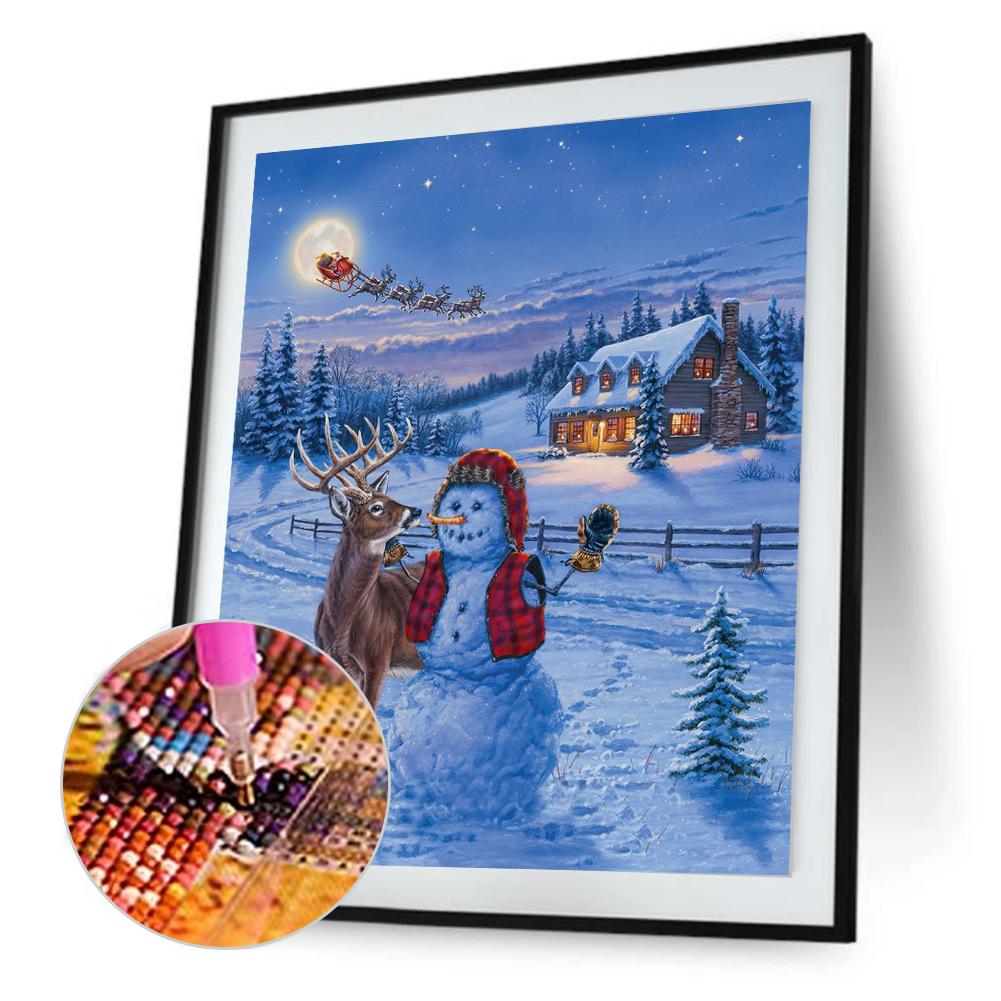 Snowman 5D DIY Full Round Rhinestones Diamond Painting Embroidery Kits Needlework Set Cross Stitch Mosaic Art Craft Home Decor Gifts